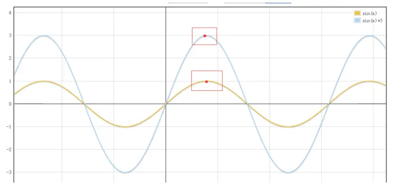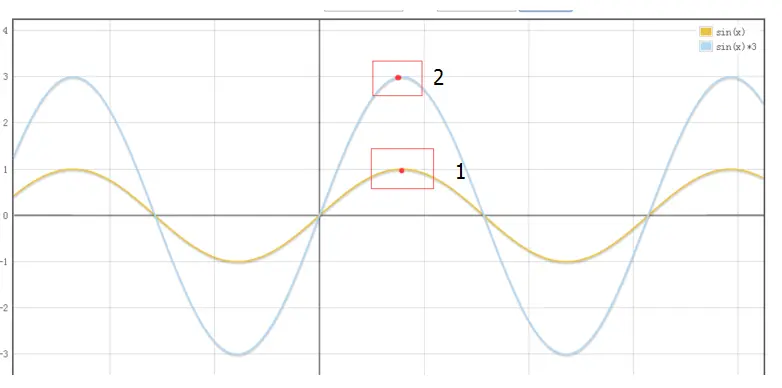 我们改变sin函数的振幅,图形就会升高或者下降。也就是在相同的x位置处,y的取值会发生变化。
