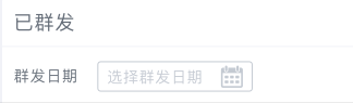 基于符合真实世界原则,我对管理系统1.0版本的一个模块中的筛选项做了以下改进。根据下图,对于公众号已经群发的文章推送进行日期筛选,在1.0版本时是直接label加日期选择框(包含提示信息)。但是咋一眼看来感觉像是输入的样子,并没有暗示用户这是一个日期选择框。所以在2.0的设计上,我在选择框中的右方添加的一个日历的icon,并显示提示文字“选择群发日期”。因为日历的icon直接给了用户提示,来告知用户该框的具体作用是什么,让用户一目了然。