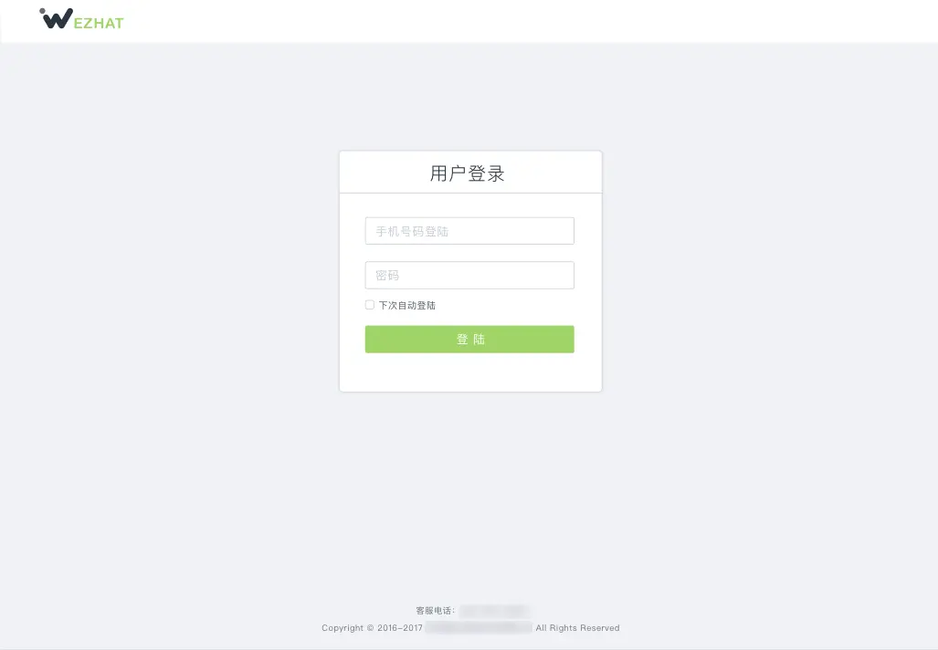 当然,在当前扁平化和简约设计大行其道的情况下,简约的设计基本成为主流了,当然在公众号管理平台1.0版本中就已经使用了简约设计的。如我们系统的登录界面,因为我们的是ToB的后台管理系统,所以会更加显得简单(好像又太简单了。。。)