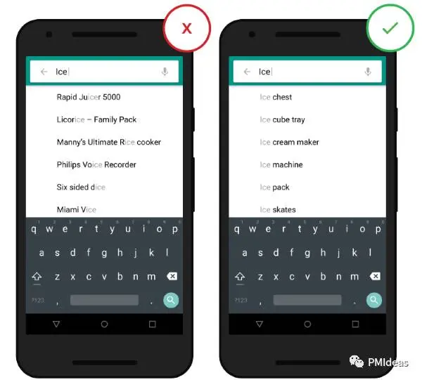 无效的自动提示自然会使搜索体验大打折扣,一定要确保自动提示功能是有效的。 根词识别、文本预测都可以应用其中。这种做法有助于加快搜索过程,并让用户随时进行转换。