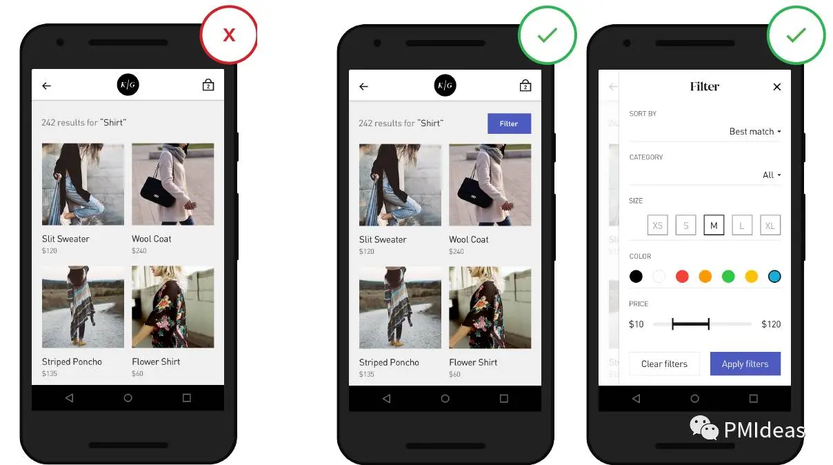 筛选项能有效的帮助用户缩小其结果范围,否则他们可能需要大量的滚动/翻页后才能找到满意的结果