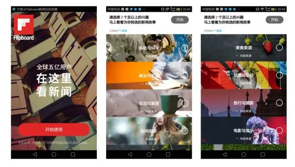 2、兴趣类的应用,引导页让用户选择感兴趣的内容