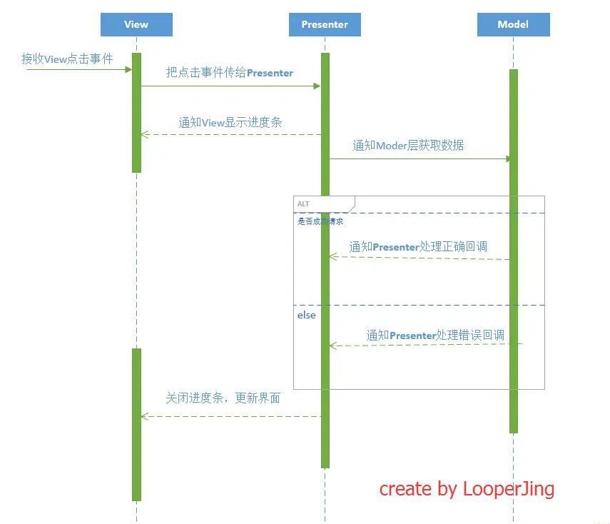 - d、回到View 层的Activity ,调用 Presenter 层获取数据。到此完成。