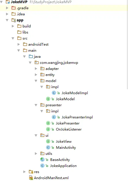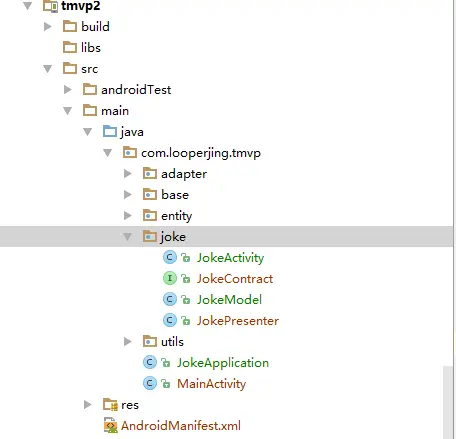 优化之前,实现一个网络请求+UI需要八个类(去除adapter,实体类等),优化之后,只需要四个类就搞定了(看joke包中的4个类),现在介绍一下优化步骤。