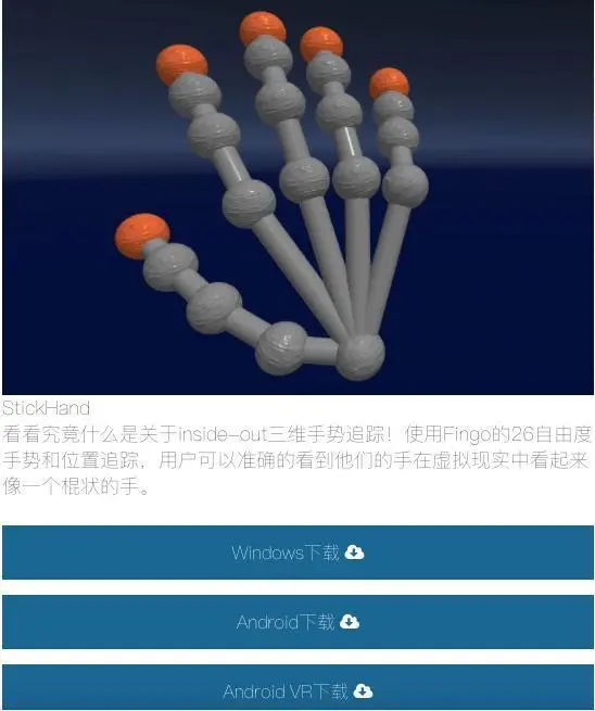 uSens Fingo 目前已接受预定(https://www.usens.com/fingo),Fingo兼容Windows7+, Android4.4+适配于HTC VIVE, OCULUS, Samsung GearVR, Google Cardboard, Google Daydream。它具有高精度、低延迟的手部骨骼追踪,在移动端方面,做了很大的优化,精确的inside-out追踪技术电池及运行的最小化消耗。