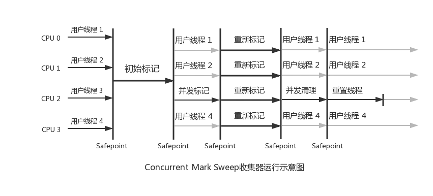 CMS(Concurrent Mark Sweep)收集器是一种以获取最短回收停顿时间为目标的收集器。CMS是基于“标记-清除”算法实现的,它的运作过程相对于前面几种收集器来说更复杂一些,整个过程分为4个步骤,包括: