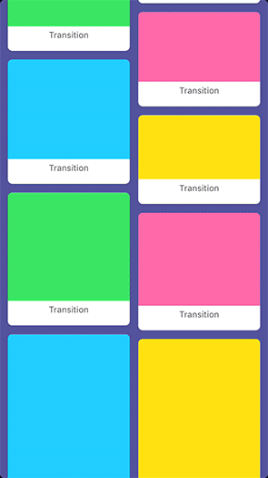 Transition is a library that helps you build iOS view controller transitions. Implementing a nice interactive custom view controller transition involves quite a number of components. You have to implement the correct delegates, handle the switching between passive animation and active interaction phases, ensure the timing is right, think of interruption and cancellation, keep responsibilities separated... It quickly gets messy! This is where Transition helps you out: you just define the animation and the interaction, Transition ties it all together.