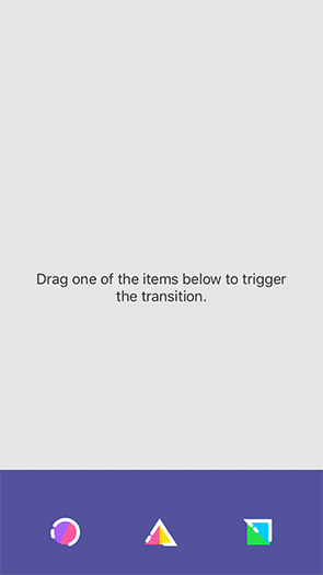 UITabBarControllertransition animations with custom interaction. - ModalTransitionsExample: shows you how to implement custom modal transition animations that include interaction with a shared element.