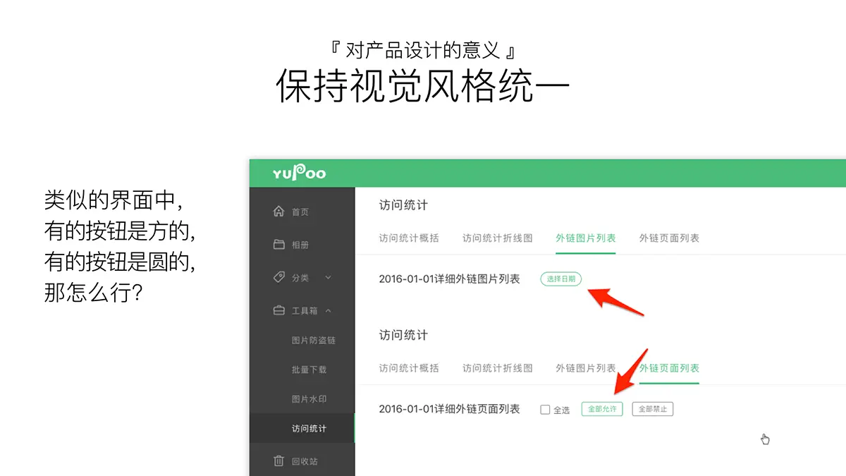 为了保持产品视觉风格统一,设计师应该找到最合适的方案,并处处保持统一,不可以太随心所欲。