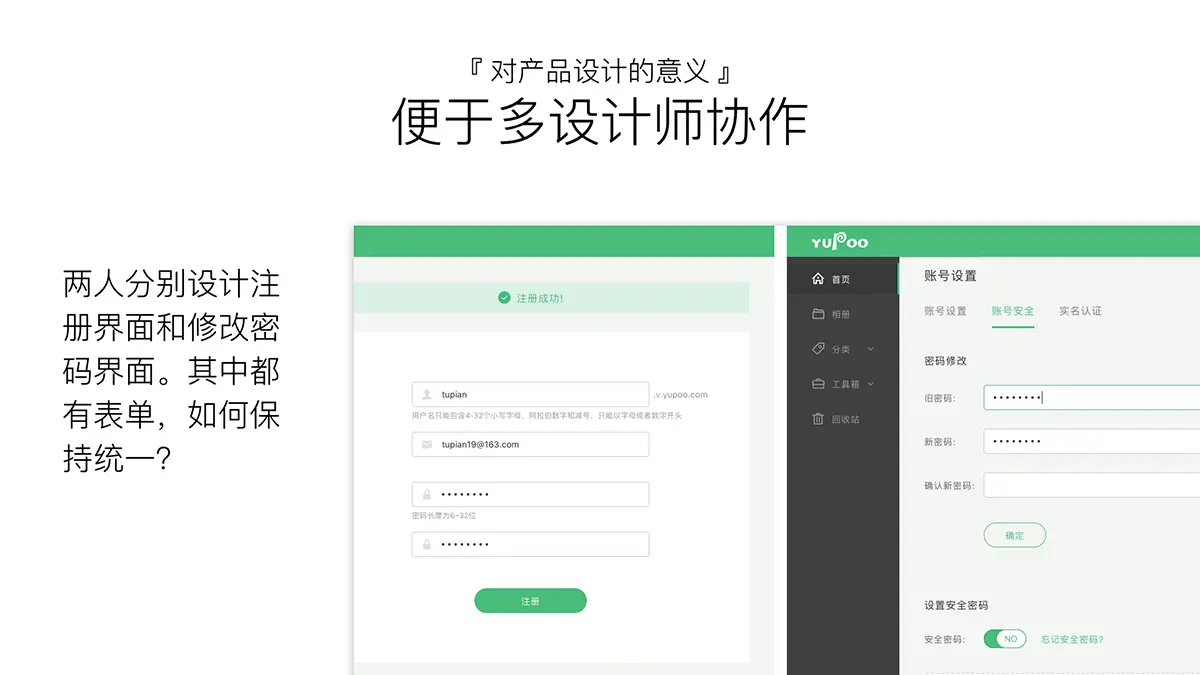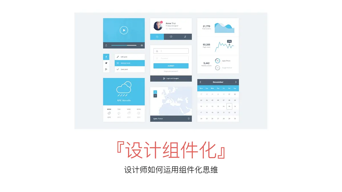 组件化设计是大型设计项目的必要条件。比如两位设计师协作,一个在设计注册界面,一个在设计修改密码界面,或者在设计某个问卷调查的弹窗。这其中都有表单,两个人设计出来不一样怎么办?一个边框颜色深一点,一个边框颜色浅一点?其实没理由不同,应该保持一致。口头约定太麻烦,而且难以保证执行到位,组件化是最好的解决方式。