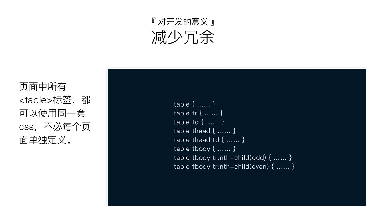 那么多份表格的样式,客户端每打开一个新的表格页面,就得加载一次。占用带宽,浪费了缓存资源。虽然一两个的影响几乎感受不到,但这种情况一多,就会对用户体验产生明显的影响。