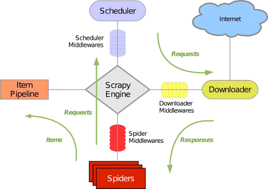通过清晰的架构图我们可以了解到Scrapy运作的流程。