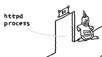 在这层的左侧,有一只号牌为 1341 的小企鹅,守在门口,门上写着 80,说明这个 PID 为 1341 的小企鹅负责接待 80 端口,也就是我们常说的 HTTP (网站)的端口。小企鹅头上有一片羽毛,这片羽毛大有来历,它是著名的 HTTP 服务器 Apache 的 Logo。喏,就是这只: