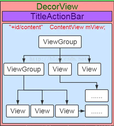 这个图应该很常见,基本上所有的资料在介绍视图等级的时候都会拿出上图来进行介绍介绍DecorView是顶级view,巴拉巴拉。。。