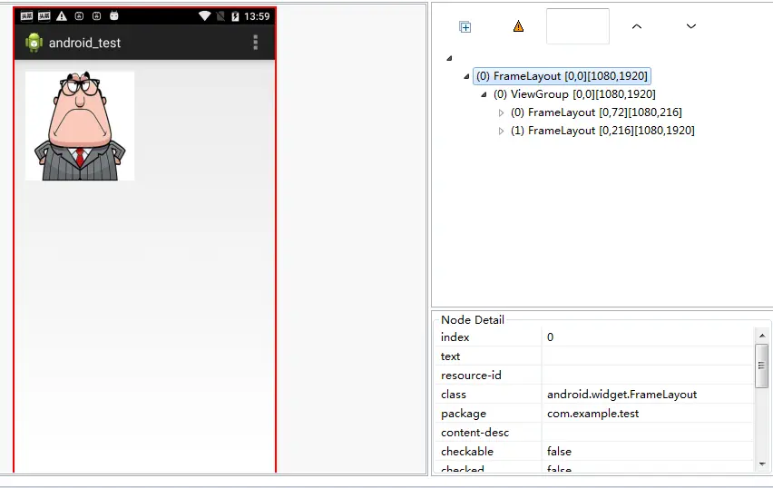 在层级图中,先找到我们自定义的布局,这是一个相对布局,其中包含了一个ImageView