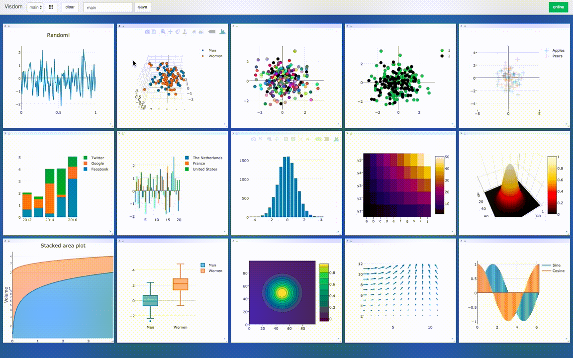 Further details on each of these functions are given below. For a quick introduction into the capabilities of visdom, have a look at the example directory, or read the details below.