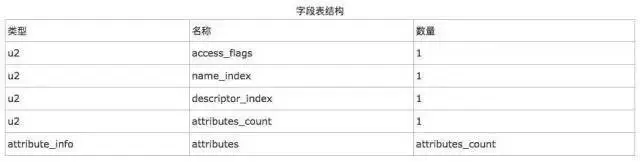 一个u2的属性名称索引,一个u2的属性长度加上属性长度的info。