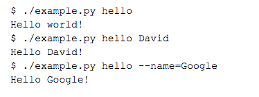 运行 Fire 函数时将会执行我们的命令。现在我们只需调用 Fire,就可以将 Example 类当作命令行实用程序来使用。