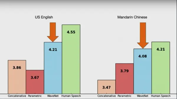 这里DeepMind的小哥演示了WaveNet的一些demo, 具体的可以参见这里来了解。 贴一些效果对比: