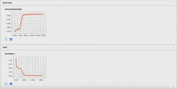 通过TensorFlow的api,收集更多的数据记录显示在TensorBoard中: tf.summary.scalar(‘cross_entropy’, xent) tf.summary.scalar(‘accuracy’, accuracy) tf.summary.image(‘input’, x_image, 3)