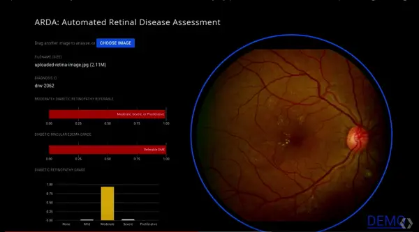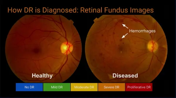 通过视网膜图片预测糖尿病是一个困难的问题,即使是专业的医生,也很难去判断,但是深度学习却可以帮助我们: