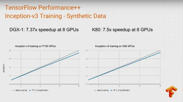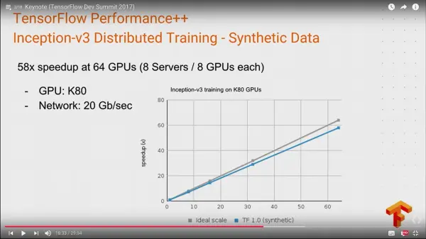 TensorFlow1.0也发布了,虽然改了好多api,但是也提供了tf_upgrade.py来对你的代码进行更新。TensorFlow 1.0在分布式训练inception-v3模型上,64张GPU可以达到58X的加速比,更灵活的高层抽象接口,以及更稳定的API。
