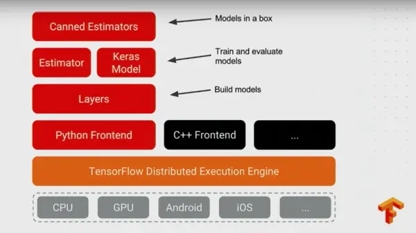 对于新的抽象接口,TensorFlow相对于其他DeepLearning FrameWork做的比较好,layers能让人很容易build一个model,基于layer之上的包括TF.Learn里面仿照scikit-learn风格的各种estimator设计以及之后将融入TensorFlow 官方支持的Keras,能够让小伙伴用几行配置模型结构、运行方式、模型输出等等;在这层之上就有canned Estimator,所谓的model in box,比如lr,kmeans这类。