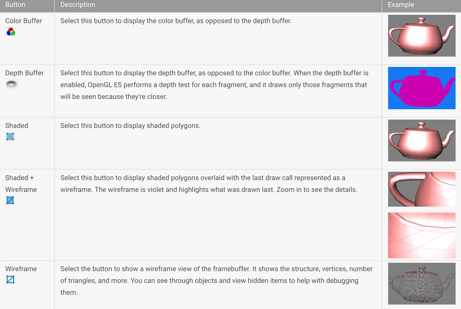 GPU Debuger是检查OpenGL ES 2.0或3.1渲染app图形的情况,打开之前生成的gfxtrace