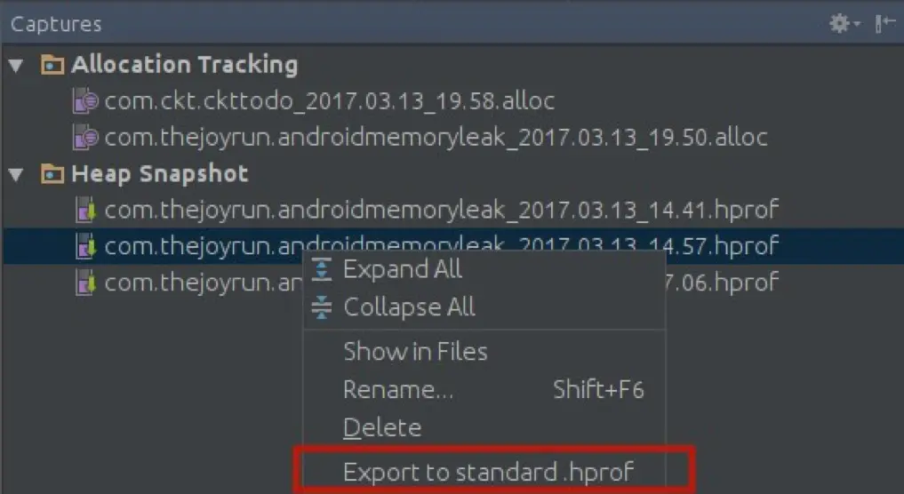 在使用MAT工具前,我们需要将.hprof文件转换成标准的.hprof文件才能被识别,在Android