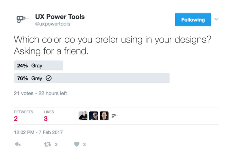 看呐,世界各地的设计师们相对于 Gray 而言更偏爱用 Grey。如果今年你还是用 Gray 的话,还是改行的好。没人要啦。
