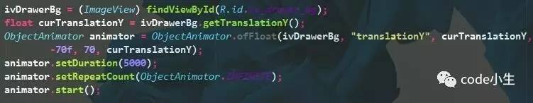 说明:这是我们的侧边布局背景图片的动画代码,通过属性动画实现循环上下移动的效果。