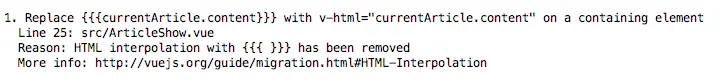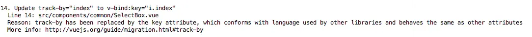 npm install --global vue-migration-helper安装完成后进入项目目录,扫描项目中文件找出需要迁移的代码位置。(并不能完全找出,但是可以解决大部分的迁移)