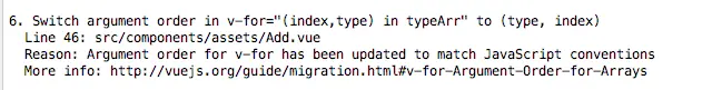 v-for 遍历数组/对象时的参数顺序变更问题的提示: