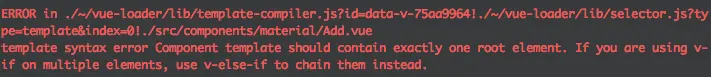 原来是我的 vue 文件中的 template 节点下有多个 div 节点。不知道为什么 Vue1.x 没有报错。全部统一为一个 div 根节点。