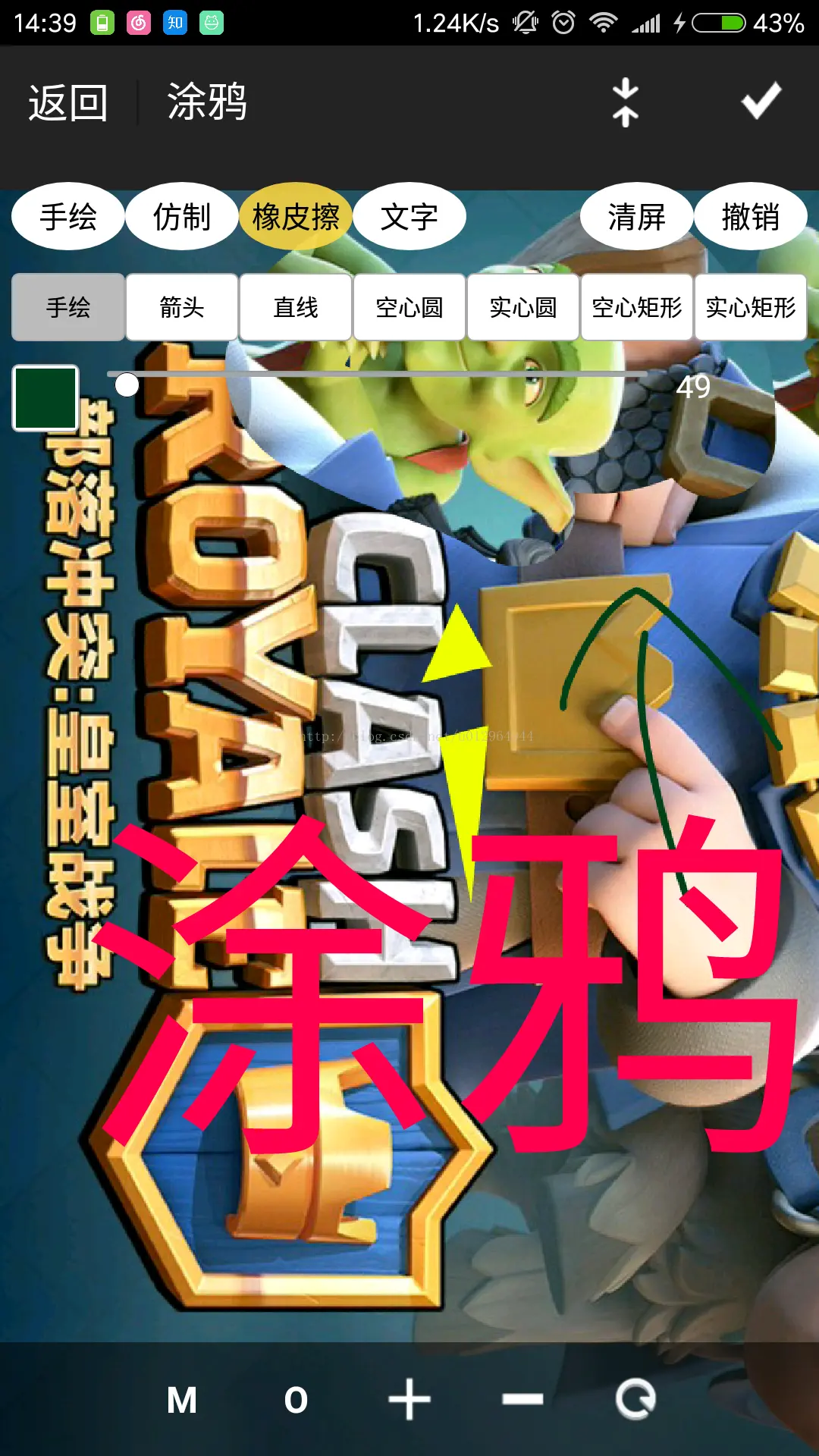 在涂鸦功能不断完善的过程中,应大伙的要求加入了图片旋转和绘制文字的功能,如下所示。