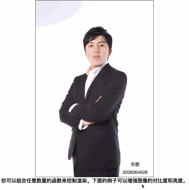 你可以组合任意数量的函数来控制渲染。下面的例子可以增强图像的对比度和亮度。