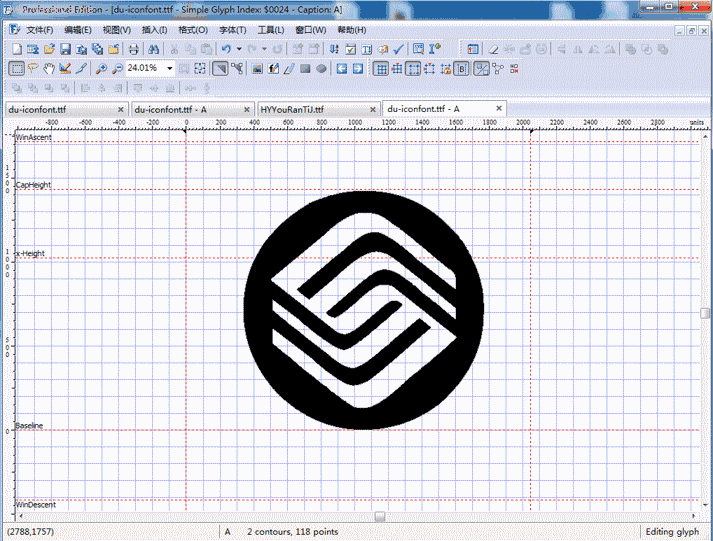 最初制作 iconfont 都是在字体制作软件里面制作,比如 FontLab、TypeTool、FontCreator之类的专业软件,我最开始的时候是使用的 FontCreator 来制作,我现在简单的给大家演示一下。