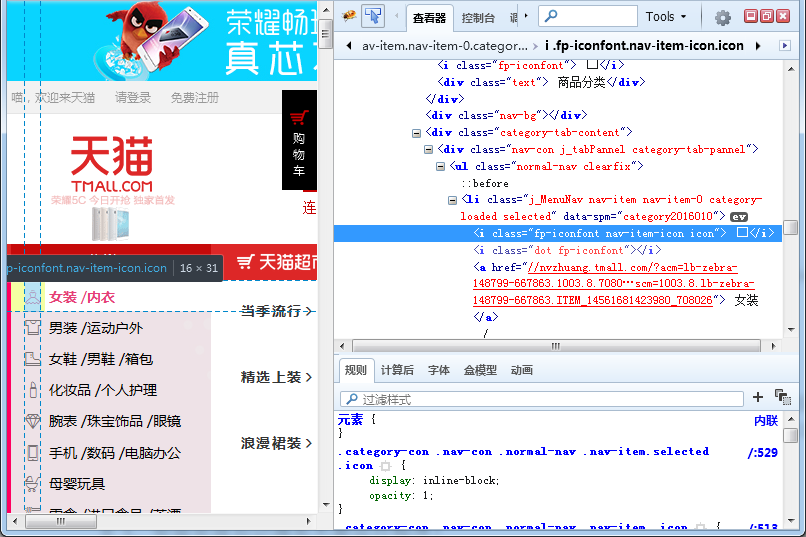 打开浏览器自带的 firebug ,用箭头指到那个图标