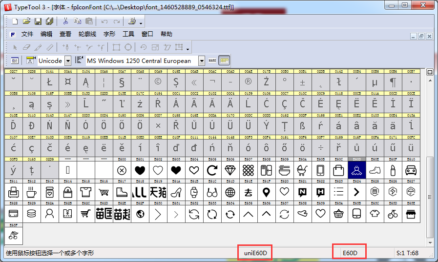 既然是字体,肯定能用字体编辑软件查看,这里我推荐 TypeTool ,来看使用方法: