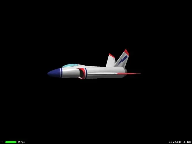 现在没有必要检查或者修改任何一行代码,你只需要构建并运行就能看到结果了:一个正在转动的3D飞机模型,截图如下: