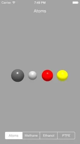 let carbonNode1 = nodeWithAtom(Atoms.carbonAtom(), molecule: methaneMolecule, position: SCNVector3Make(0, 0, 0))