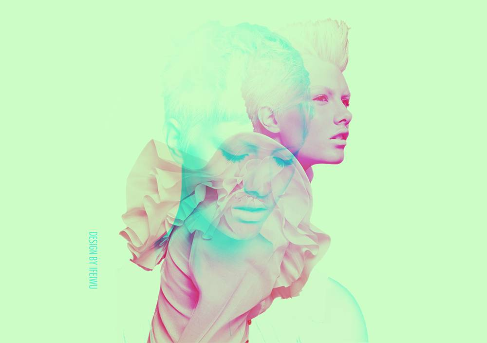 平行世界是一个最新的量子物理领域所提出的概念,简单说就是,世界不止一个版本。那么移植到我们的设计中,我们就可以将一个人的两个形象相互叠加,形成一种“双生”的氛围。