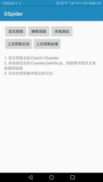 })可见爬取脚本非常简单:用jquery解析网页,然后再通过session对象和native 进行交互。详细的API文档请移步dSpider Javascript API文档。