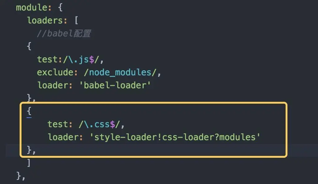 loader: 'style-loader!css-loader?modules'