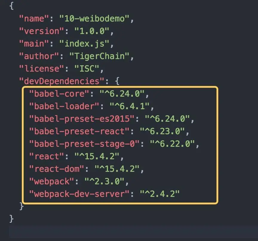 经过前面几节的学习,我们都知道安装这些依赖是什么意思,这里不再多说,如果明折,可以看 webpack 这节www.jianshu.com/p/732c4d501…。