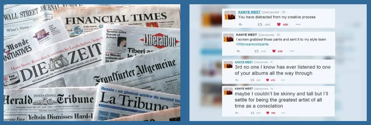 另一个常见的域适应场景是适应不同的文本类别:例如词类标签(part-of-speech taggers)和句法分析器(parser)等标准的 NLP 工具通常是用《华尔街日报》之类的新闻数据进行训练。但是,新闻数据训练出来的模型难以应对其他的文本类型,例如社交媒体上的消息,这是它们面临的挑战。