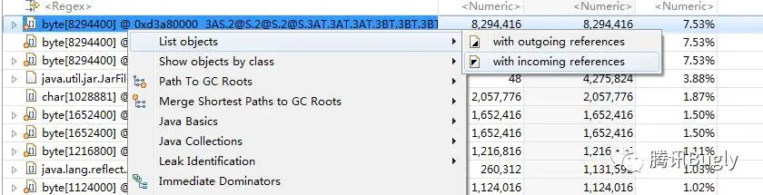 我们通过List objects->with incoming references查看(这里with incoming references表示查看谁引用了这个对象,with outgoing references表示这个对象引用了谁)