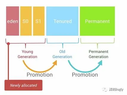 最近分配的对象会存放在Young Generation区域,当这个对象在这个区域停留的时间达到一定程度,它会被移动到Old Generation,最后累积一定时间再移动到Permanent Generation区域。系统会根据内存中不同的内存数据类型分别执行不同的gc操作。