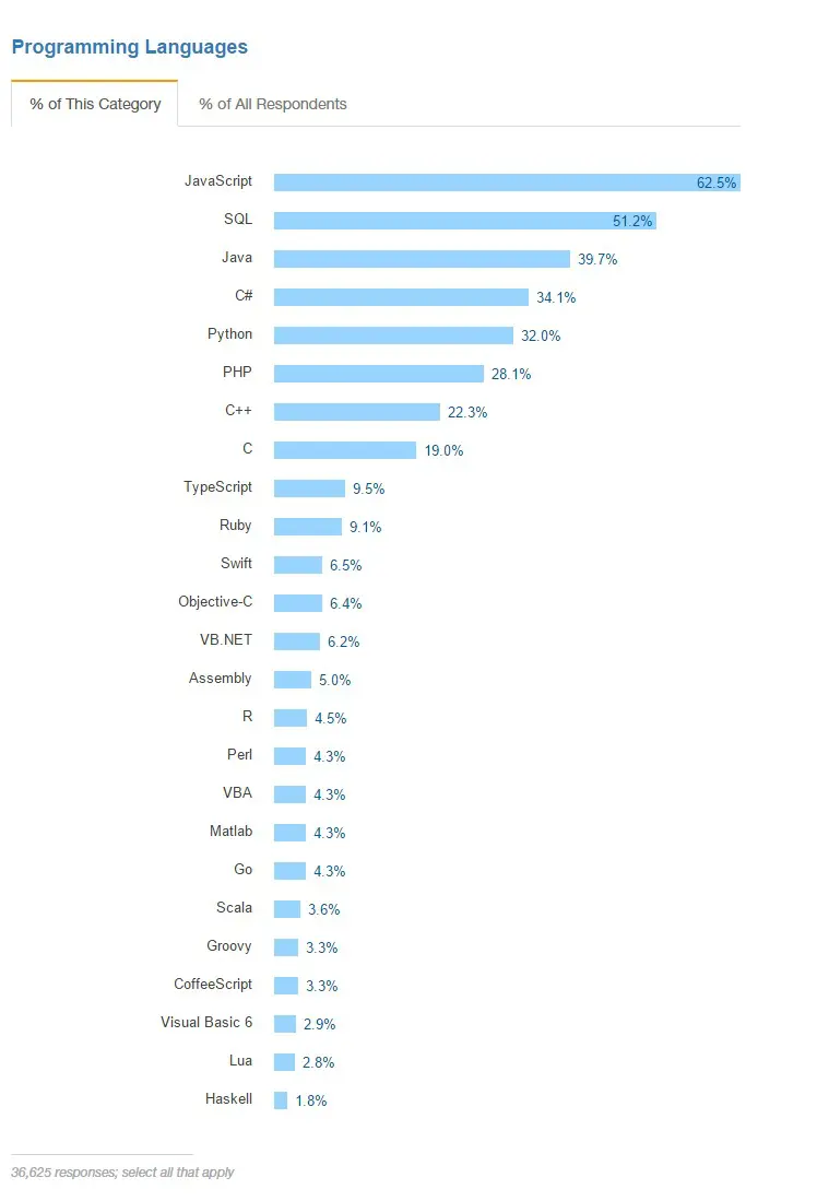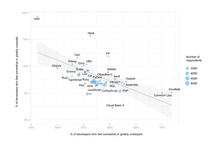 相比使用JavaScript、Perl和Python的开发者,使用Haskell和Matlad等语言的开发者更容易觉得自己薪资过低。