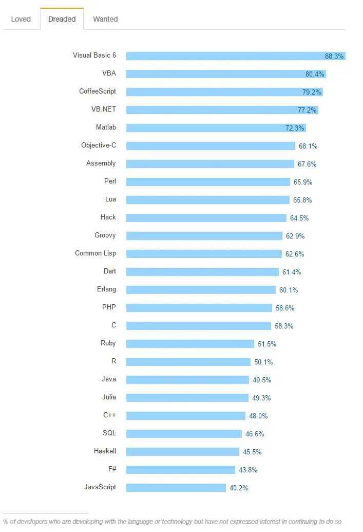 Visual Basic今年又一次被当选为最让人害怕的语言。